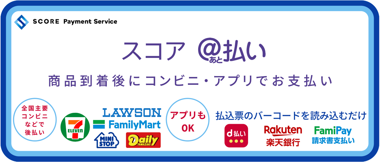 - ●代金譲渡等株式会社SCOREが提供するサービスの範囲内で個人情報を提供します。与信審査の結果により他の決済方法をご利用していただく場合もございますので同意の上申込ください。